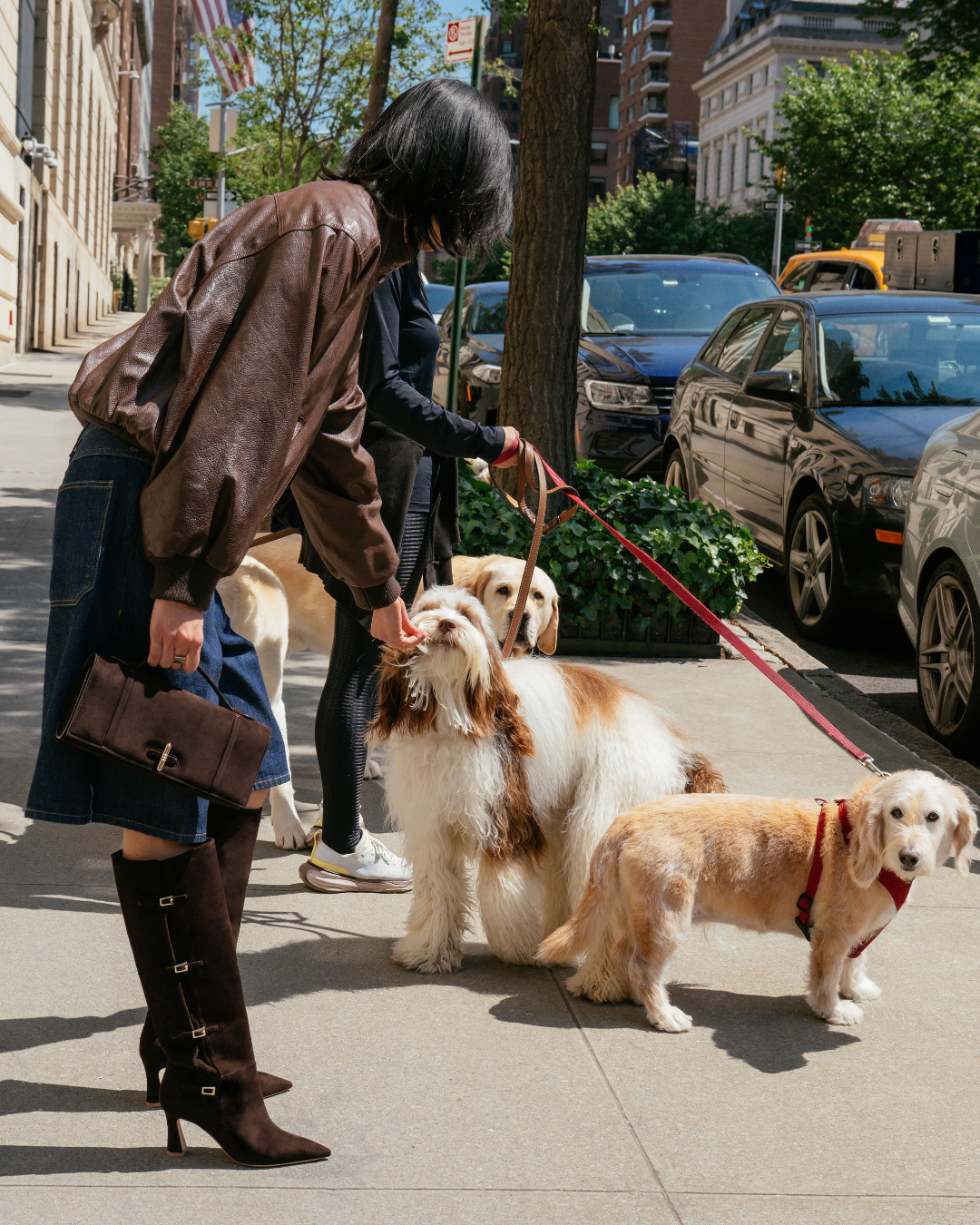 Coco and Valerio: Shooting the campaign in NYC was so thrilling. Tommy, Tyler, and Jessi were the dream team to work with. Our wonderful model, Michelle, was the MVP – running around the busy crosswalks and cobbled streets in towering heels all day long so we could get the perfect shot. I’m so glad we got to capture the moment of Michelle with some adorable dogs on their walk.