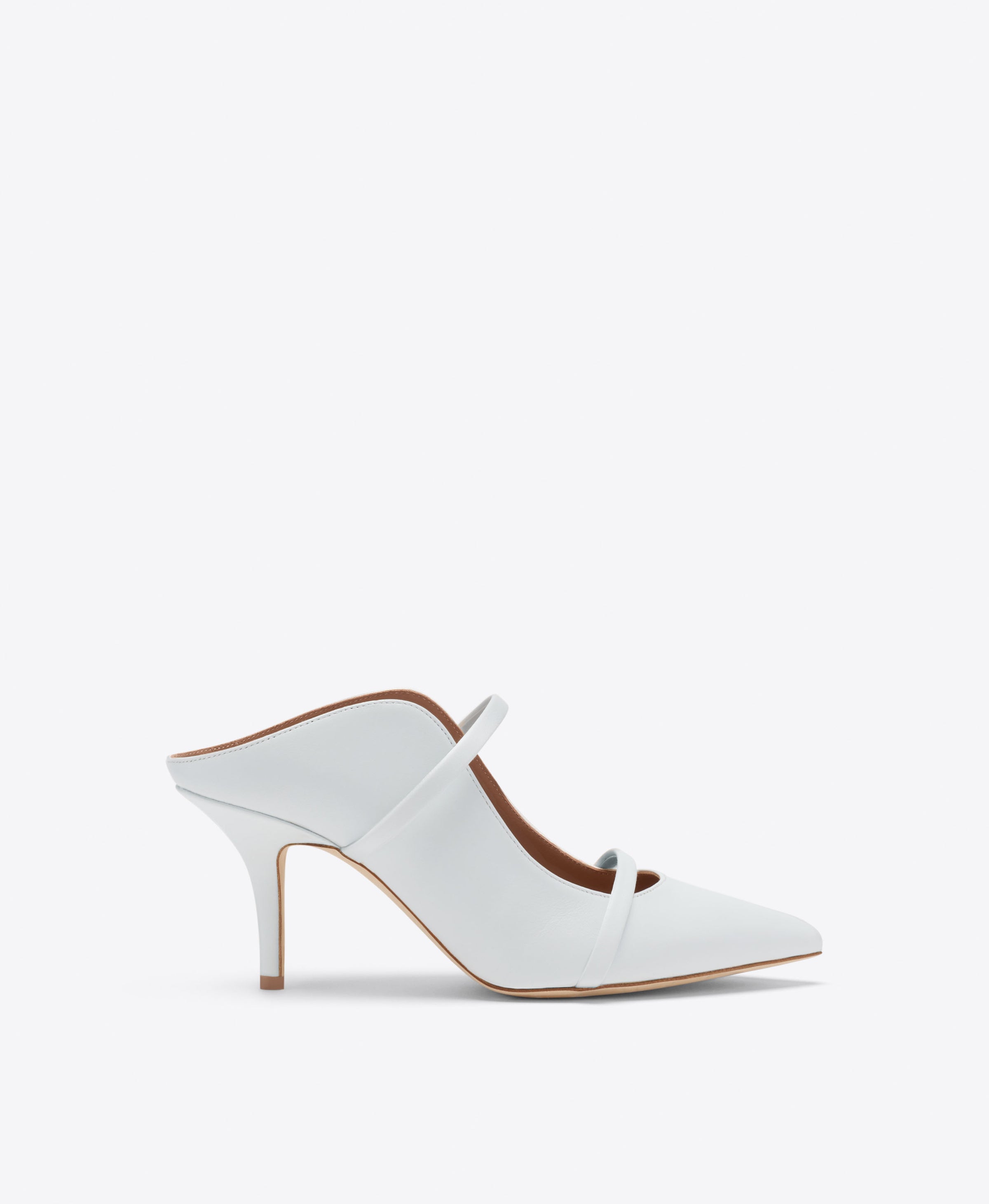 Maureen 70 White Leather Heeled Mules