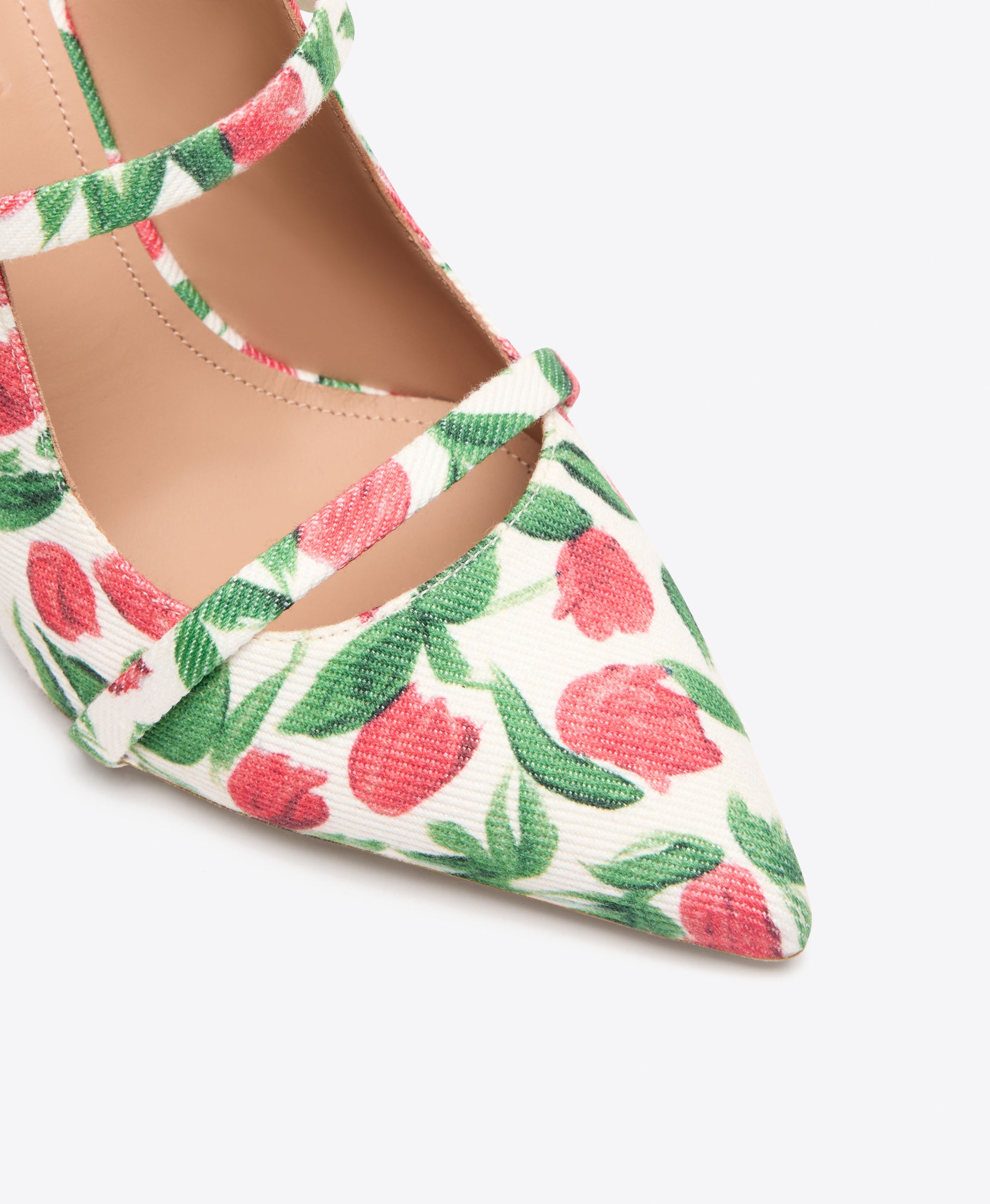 Maureen 85 Red Tulip Print Canvas Heeled Mules